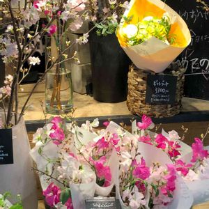 今日の花散歩🚶♀️🚶♂️ おしゃれな花屋さん ピンク色のスィートピー お名前は 「さくら」