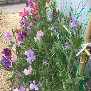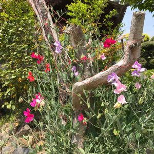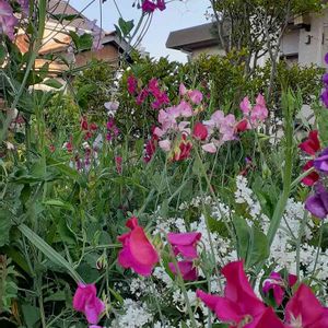 色々な色の同じ花が咲いていました。スイートピーかなと思うのですが、どうでしょうか。