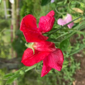 帰り道2枚め〜 植木の中に スィートピー🌸💜🌸💜🌸 初めての地植え👀❣️切り花の短いもの しか見たことない😅 こうなるとやはりマメ科の植物だなぁと 改めて思いますね😆 花言葉は 「門出」「別離」「優しい思い出」「永遠の喜び」「私を忘れないで」そして「蝶のように飛躍する」だそうです🌸