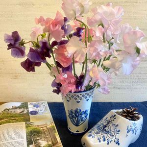 格安のスィートピー 思い出のデルフトの器に入れました💖 甘い香りと、優しい色に心癒されてます✨