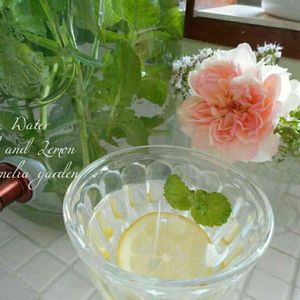 庭のハーブとレモン酢をつかってデトックスウォーターに*✲゚* 使ったハーブは♡ レモンバーム アップルミント ウォーターミント レモンバーベナ レモングラス