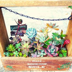いただいた木箱プランター 、 もう5年使い続いています 隙間もちょうどいい水や空気の通り道 多肉たち、居心地良さげ😊