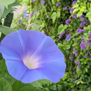 朝の庭 太陽が昇り 日差しが差すと 花色が 青から紫色へ… 綺麗に咲いていました☺️💞