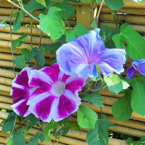 涼しくなってからよく咲く朝顔。 今咲く中で一番美しい子を2枚目にUPしてみました😊 おまけ種に5粒ほどいただいた江戸風情。 白に紫のストライプが基本のようですが、変わり種のようにいろんな模様が咲くのが可愛い💜 フウセンカズラと一緒でいっぱい種が下に落ちていそうだな。 あえて種を採取する予定はありませんが、零れ種で我が家の夏の定番になるでしょうかね🙄