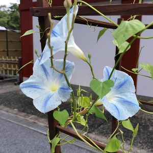 今日の午前、市内を散歩途中に見かけた朝顔。