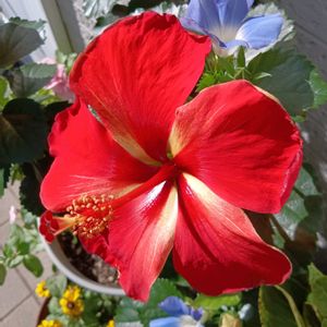 おはようございます🤗 🌺ハイビスカス🌺 まだまだ綺麗に咲いてます。 植えた覚えのない朝顔も一緒に咲きました😅