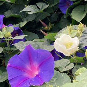 ゚.*ꕤ 朝顔 ꕤ*. ゚ 夏には猛暑とアブラムシで瀕死だった朝顔たちが 復活して、また咲きはじめました〜 ❶マジックオーシャン ❷暁(混合) 寒い中の朝顔もきれいね〜( *´艸`)🫧 種作ってくれるといいな〜
