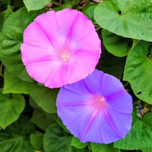 🌱2025年🌸朝顔日記121 😄おはようございます❗️ 🌸今朝は2輪+ジュニア3輪です😙 今年通算🌸2084輪+66輪(ジュニア)になりました😊