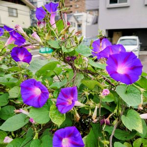 今日の午前、市内を散歩途中に見かけた朝顔。