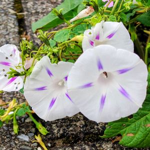 今年最後のアサガオ(紫) と ちょっと前の桔梗咲き と 曜白