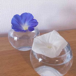 今日咲いた朝顔。有給を取って家にいるので、切り花にしてみました。