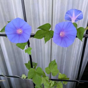 朝顔ヘブンリーブルー 今朝初めて咲きました💙🍃💙🌿💙🌱 今日は雨で肌寒いです☔️