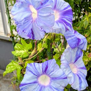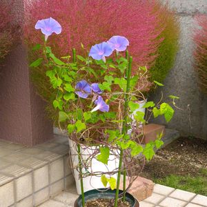 朝顔 初めて複数咲きました〜 かわいい。蕾をみると翌日の開花予定もわかるのね。部屋の中からも見えるので朝ごはんを食べながら開花を楽しめます。