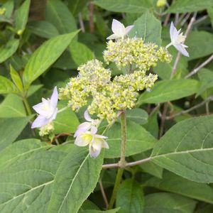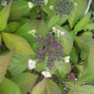 ヤマアジサイ`伊予の薄墨´ 花の色はだんだん黒く変わっていきます