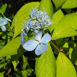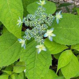 こんにちは😃 梅雨の中休みでしょうか? 少しばかり、晴れ間ができました。 美しいヤマアジサイです。 装飾花と中央の小さな両性花。 周りの装飾花が大きなものをガクアジサイというようです。🤔 最近では、装飾花の色が多彩で美しいです。😘 今年のようにはっきりした梅雨では、アジサイの美しい姿はとりわけ見事に見えます。