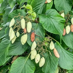 お寺の境内の大きな木に一面に這い上がったツタアジサイ。 時期か遅かったのか萎びてグッタリしてるようにも見えました。 初めてお目にかかるアジサイでした🙂