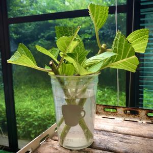 種類を識別するために あえて花を残した挿し穂 ヤマアジサイ