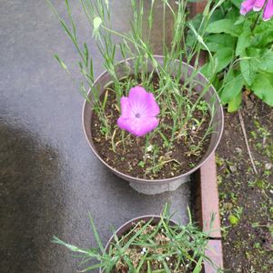 タネから育てた草花の開花第一号。 ベランダプランターでもやれば出来るんだな アグロステンマ(ムギナデシコ)