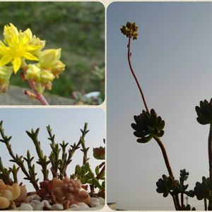おはようございます。 お待ちかねの、乙女心の花が咲きました🌸 花が咲いたら頂点の塊が枯れちゃうのかな?3苗あるので1つは、観察のために残そうと思います。 左下は、秋に迎えた桜竜。青空に上がる竜をイメージしたけどまだ長さが足らないね😢