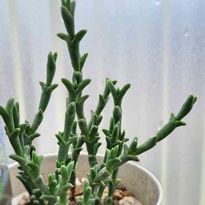 【スミクロスティグマ属 桜竜】 Smicrostigma viride 目を凝らすと葉に窓が見られます タニ友サンからのいただきもの ネームタグは【桜竜】 マメチャン、アレカラチョット セイチョウシタヨ ෆ╹ .̮ ╹ෆ 【銀孔雀】に似ておりますが、 World of Succulentsによると 属名と花の色が異なるらしいです🌸 【ルスキア属 銀孔雀(クラッサ)】 Ruschia crassa 南アフリカ自生 葉は青緑色で枝はヒレ状 花は白 https://worldofsucculents.com/ruschia-crassa/ 【スミクロスティグマ属 桜竜】 Smicrostigma viride 南アフリカ原産 葉は断面がフック状で三角形 花はピンク https://worldofsucculents.com/smicrostigma-viride/ 🐲属名の「Smicro」はギリシャ語のsmikrosに由来 「小さい」の意味 🐲属名の「stigma」は英訳で「柱頭」 🐲種名の「viride」はラテン語のviridisに由来 「緑がかった」または 「緑になる傾向がある」の意味 訳を合わせると 「緑がかった小さな柱頭」 でしょうか?