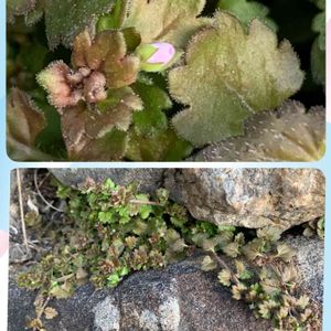 春待ち〜🤗 上 イヌノフグリ オオバコ科クワガタソウ属 左下 ヒメウズ キンポウゲ科ヒメウズ属 右下 キランソウ シソ科キランソウ属 しばらく通らなかった“石垣の隙間”植物園❓