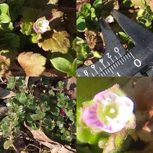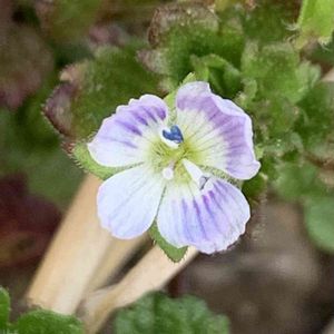 イヌノフグリ Veronica polita var. lilacina オオバコ科 クワガタソウ属 小さな紫色の花がチラチラ見えたので近づいてみたらオオイヌノフグリに似た花だったのでもしかしたらと思い調べたら、案の定、イヌノフグリでした🌸 オオイヌノフグリに比べるとかなり花のサイズが小さいのですぐ判別でしました🌸