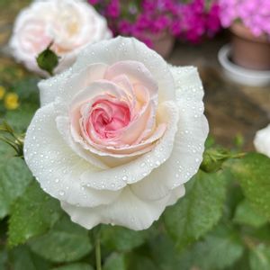 憧れのバラ ピエールドゥロンサール🌹 鉢植えですが開花🪴 お花の色が微妙に違いますね。 鉢植えなのでこれからどのように 切り戻せばいいか思案中🤔