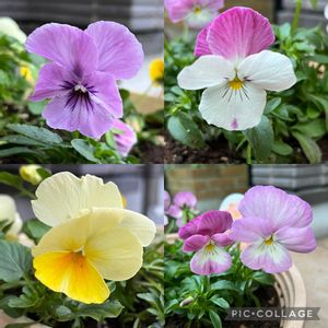 見元ビオラとフツーのビオラ 玄関を彩っています🩷💜💛 雪が降るまでもう少し楽しみたいな😊