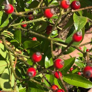 こんばんは🌃 *ローズヒップ*① 「ローズヒップとは?」 庭やベランダを華やかにしてくれるバラ🌹。 品種によっては、実がつくのをご存知ですか? しかも、女性に人気のローズヒップティーの元になるんです。 でも、お茶になる前の姿を目にする機会は少ないので、ピンときませんよね。 そこで、どんな植物の実なのか〜、 ローズヒップについてご紹介します。 興味のある方はぜひ 育てて収穫を楽しんでみて下さい。 ローズヒップとはじつは「バラの実」のことなんです! バラの実 ローズヒップとは、 バラ科の植物につく実の事です。 10~11月に収穫の時期を迎えます。 赤やオレンジ、もしくは濃い紫色をしており、 球形や涙形など見た目は品種によって違います。 お尻を意味する「ヒップ」と名前に付いていますが、じつはバラの果実を意味する言葉でもあるんですよ。 「ローズヒップはどんな品種のバラにも実るの?」 庭で綺麗に育つバラ🌹に必ず実るものではありません。 主に*ワイルドローズという バラの*原種(ハマナスなど)に付き、 ハーブティーなど食用のものと、 フラワーアレンジメントなどの花材用のものに分かれます。 ⚠ただ、花材用のものは農薬や下痢作用など体に問題を起こす可能性があります。 また、実が硬い、小さいといったこともあるので、 食べる目的で栽培するときは品種をしっかりと見定めてください。 いずれの用途であっても、園芸用のバラより丈夫な事が多いので、気になる方は栽培にチャレンジしてみて下さいね!