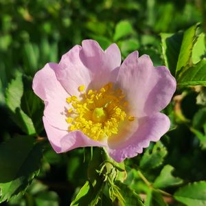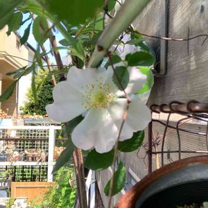 ローズヒップティの花。 去年苗を買って、はじめて花を咲かせました。 実がつくの楽しみ🎵