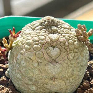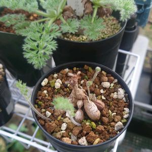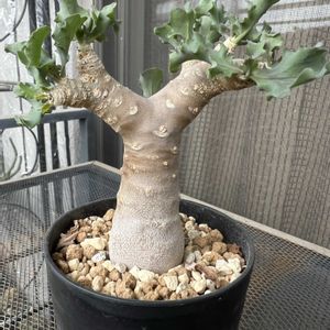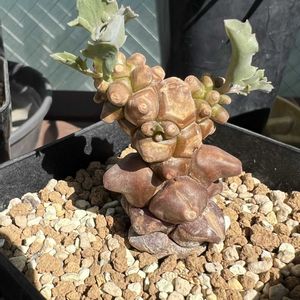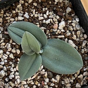 今年の6月にうちに来たチビ苗です ドキドキの休眠をあけ、 あっと言う間に葉が出始め 株が見えないほどの大きな葉に成長 こんなチビ苗のどこにその力があるのか不思議です 葉も厚く葉脈がクッキリ、 裏は綺麗な紫色に………🤗 そんな変化の中、株は全くの成長無しのご様子、ちょっとでも良いから動いて〜🙏 自生地は東ケープ州の南部、年間を通して適度な降雨がある為、成長期は水を好むと記されていました。 なに‼️「水を好む」😳💓ムムッ 水やり好きな私としてはちょっと嬉しい。 やり過ぎ注意で見守って行きたいと思います