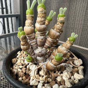 娘の送迎の合間の時間、ふだん訪れない地域だったので、近くの園芸店でひまつぶし。 ついついアルブカ・ナマクエンシスとモニラリア(品種不明)を購入 ナマクエンシスという札のほう、おそらくバイトの店員さんに「これはアルブカとは違うんですか?」ときいたら「アルブカではなくナマクエンシスです」と言われたけど、帰宅して調べたらアルブカ・ナマクエンシスだった🤣 アルブカ好きだからまぁいいや。3つ目のアルブカです。 3種類並べてみました。コンコルディアナはまだ小さな葉っぱが2枚だけ。 モニラリアは品種不明。 いっぱいあったけど、あえて成長していない小さい苗を購入。 小さいほうがウサギさんがいっぱいいるみたいで♡