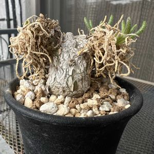 チレコドン ベントリコーサス 芽が出ていますが、トリミングと植え替えをしました。 倒れるように横に広がっていく奴なので、鉢選びに悩みました。 とりあえず半懸崖風にしました。