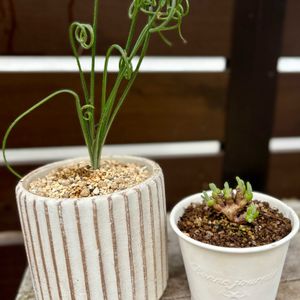 冬型さんたちのおめざめ。 今年はアルブカさんたちがなかなか目覚めなくてヒヤヒヤしていたけど、両方とも葉っぱが出てきて一安心! フリズルシズルのほうは球根部分が崩れてるような感じだったし、コンコルディアナのほうは昨シーズンの冬の間に葉を落としてしまっていたから、心配していたの。