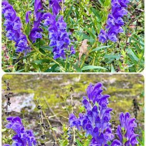 花を見て分かるようにシソ科のタツナミソウの仲間でコガネバナです😍 なかなか美しい花ですが、これの根もオウゴン(黄芩)と呼ばれる生薬になるそうです。 花は紫色なのになんで黄金花❓と思いますが、生薬になる根の断面が鮮やかな黄色だそうで、名前はそこから来てるそうです。