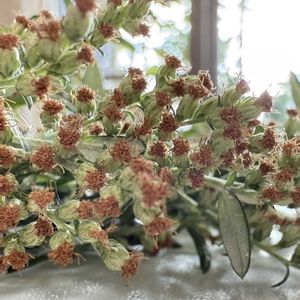 ドライフラワーのようで 可愛らしいヨモギの花♡ 西蓬(にしよもぎ) 科属:キク科ヨモギ属 沖縄方言フーチバー フーチは病、バーは葉という意味。 沖縄ではエネルギーが出るような食べ物のことを命薬(ぬちぐすい)と言い、ビタミンAやカルシウム、カリウム、鉄分など、栄養素がたっぷり含まれているフーチバーは、病気を治す薬草として沖縄で昔から食べられている💪