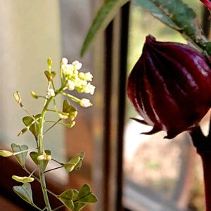 おはようございます🎶 1️⃣ペンペン草とローゼル! もう畑にはペンペン草の花が咲いてました❗ 花も果実も可愛いので、ローゼルと一緒に花瓶に飾りました。 2️⃣ペンペン草(ナズナ)! 春の七草の1つで、果実のハート部分が三味線のバチに似てるところから、別名ペンペン草の名前がついたようです😁‼️ 3️⃣ローゼル(アオイ科)! そろそろ終わりみたいなので、全部出来ている実を収穫しました。 4️⃣ローゼル! 萼部分を取るのに包丁で、ぐるりと切り込みを入れて切り取ります。 上が切り取った後の実! 下が切り取った後の萼! 切る時は手袋必須です😆🎵🎵 乾燥したら、ハイビスカスティーとして飲もうと思ってます🤭🎶 効能として美肌、疲労回復、免疫力向上に良いそうです😉💕