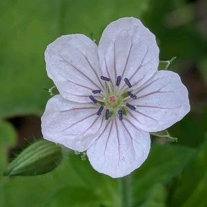 こんにちは🌥️ 丘陵地にて 刈られた後にぽつんと小さなお花が見えます。 ゲンノショウコを二つ見つけました。もう受粉して雄蕊は見えず、花柱が目立っています。 花弁が散った後も萼片が赤くなってキレイです。 フウロソウ科フウロソウ属