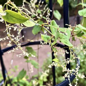 このつる性の植物はツルドクダミです😄 中国方面原産ですが、日本に帰化していて結構山野に自生してますね。これも日本薬局方に登録されている漢方薬の原料です。 ドクダミと名が付いていますが、これはタデ科なのでドクダミ科とは別種の植物です。葉がドクダミに似てるということからの名前ですけど、似てるとは思えないなぁ…😅