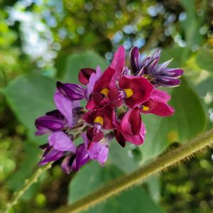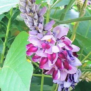今日のお花 💜クズ(葛)💜 葉の裏が白いので 別名ウラミグサ(裏見草) マメ科 蔓性多年草 半低木 秋の七草 根を使い薬草(葛根湯)、和菓子(葛粉) 花葉も食用、茎からは糸を作ることが出来る それなりの所に行くと蔓が電線にまで絡んで蔓延っている😆。雑草かも知れないけどリスペクト出来る植物、いいですね、花が綺麗💞