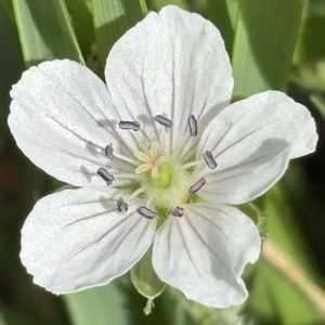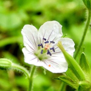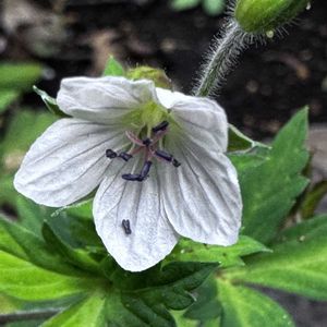 今日のお花 ゲンノショウコ 美味しいスイーツを買いに出かけた先で、まずお花撮りました🙋♀️ 真っ白ゲンノショウコさま〜♡