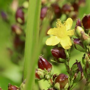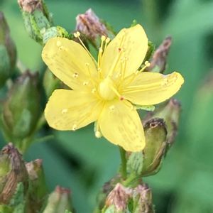 セイヨウオトギリソウ (オトギリソウ科) 山地や丘陵地に生える多年草で、夏に枝先にレモンの香りがする黄色の5弁花を咲かせます。 古くからヨーロッパで薬草として用いられ、ハーブティーとしても飲まれる🫖近年では軽度から中程度のうつ病に効果があるとのことで、サプリメントとして利用されているそうな。 箱根湿生花園にて撮影📷