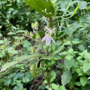 〜ツルニンジン〜 (ジイソブ)爺のそばかす 🍀キキョウ科 ☘️ツルニンジン属 🏷️山野草 🏷️今年も会えた 🏷️つる性多年草 今年も会えた 可愛らしいお花 雨乞牧場の手前