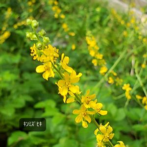 🟡キンミズヒキ🌿 黄色い小さな花がかわいい 茎葉は中国伝統の生薬だそうです 最近、新しい効能(老化防止)が発見されたとか? 急にありがたい葉っぱに見えてきました👀 増えるということで鉢植えにしてましたが、鉢底からしっかり地面に根を広げ、固定されてしまいました🤣