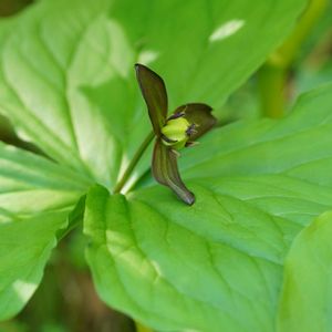エンレイソウ(延齢草) 大きな葉に小さな花が咲きます😊 花色(萼片)は緑や濃紫があります😃 白花はシロバナエンレイソウとして区別されています🧐