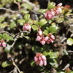 コケモモ(苔桃) 真っ赤な実は食用として有名です😊 亜高山帯から高山の針葉樹林内や岩礫地に生えています😃