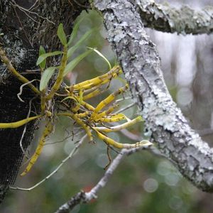 セッコク(石斛) ラン科セッコク属 節のある茎は偽鱗茎と呼ばれ一般的には(バルブ)と呼ばれるらしい。1年目のバルブは節毎にはがれる。葉は年の終わりに脱落、大きさが十分なら葉のなくなったバルブは次の年に花を咲かせる。(Wikipediaより抜粋引用) ヒノキバヤドリギが無くなった鎌倉浄妙寺のお庭の梅の古木(多分)に見られました。