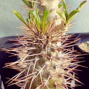 02月01日(土) おはようございます٩(๑❛ᴗ❛๑)۶🌅 2025年に入って早いものでひと月 が経ちました…3日は立春まだまだ 寒い日が続きます🥶😨☃️ 今日のお花がありませんので、鬼の 金棒のような植物を投稿致します。 花木センターみのり インターパーク店温室内 鋭い棘 痛そう 植替え大変だろうな パギポディウム ラメリー