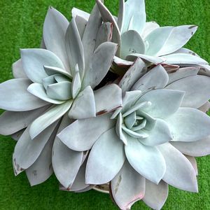 エケベリアホワイトロータスです❣️ うちに来て5年くらい経ちます。 一昨年くらいから急に成長してます😊 多肉植物って、急にスイッチ入って大きくなることありますよね💓 少し涼しくなったら株分けしようかと迷ってます🥺
