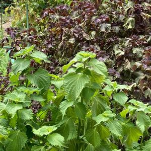 8月2日 今日のお花 💚💚🌿 シソ 🌿💚💚 シソの葉は、一般的に「大葉(おおば)」とも呼ばれ、 青じそは、刺身のつまや薬味、天ぷら、和え物などに使われます。赤じそは、梅干しの色付けやシソジュースの材料として使われるとが多いです。 🏷️土曜日はお空の発表会